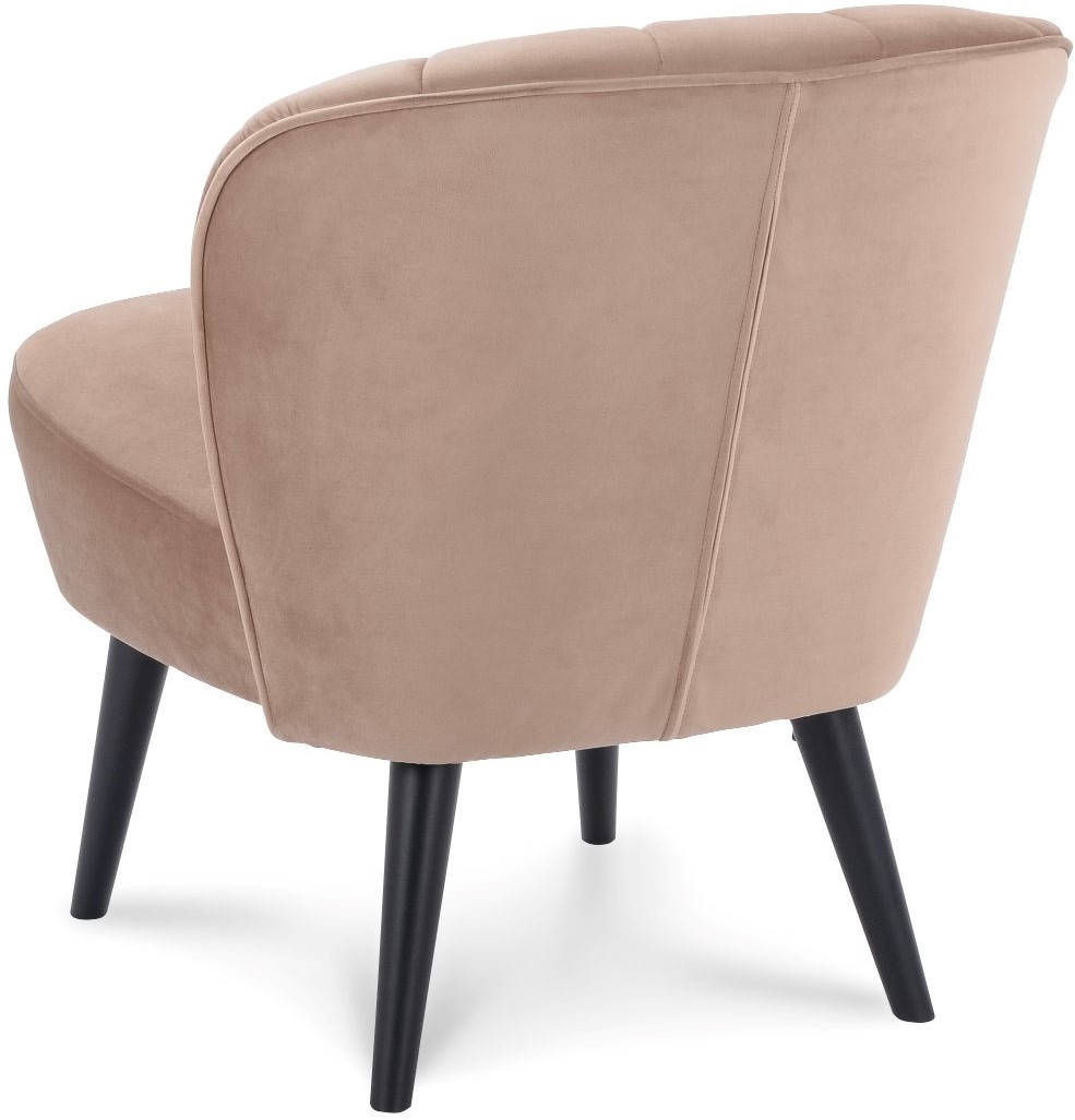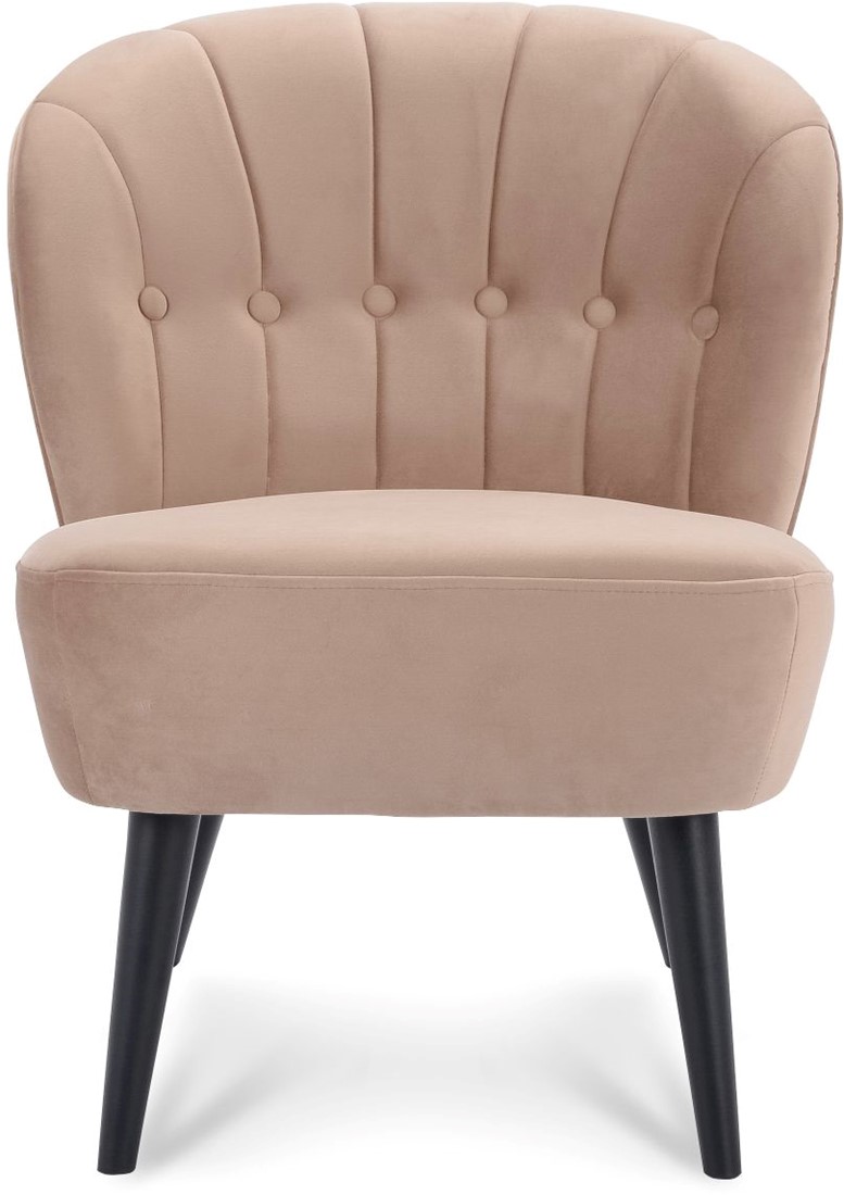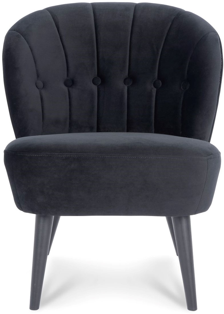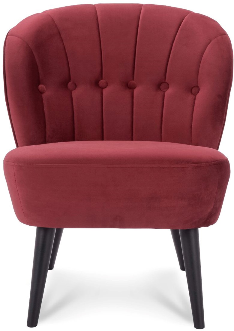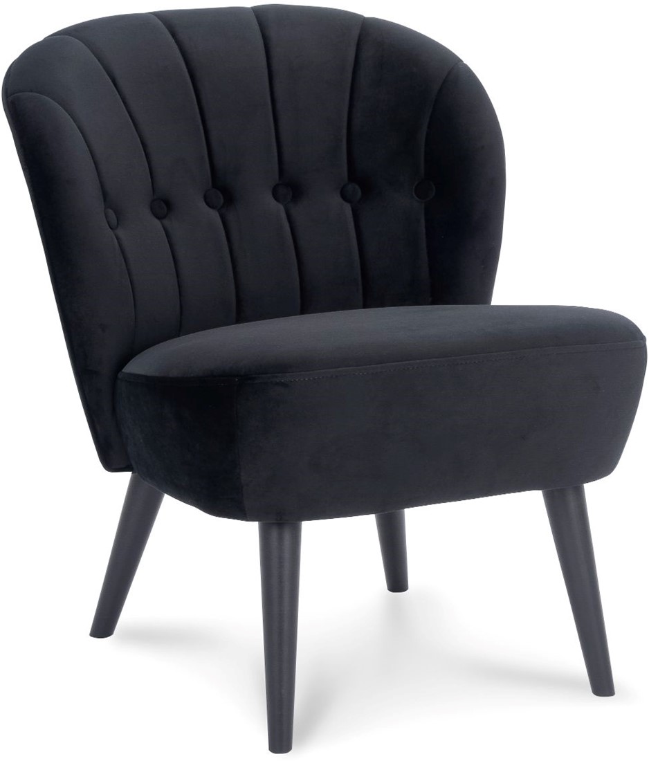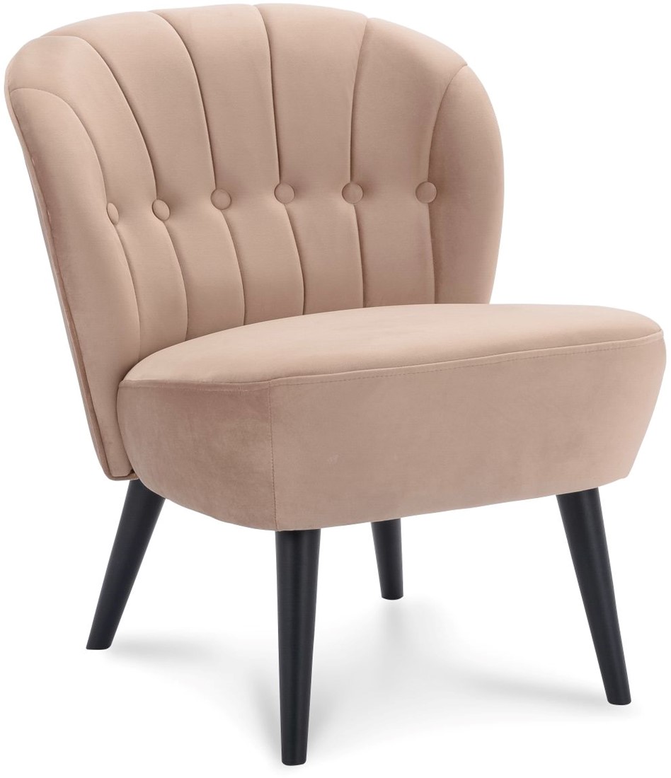 • De Selon is een leuke fauteuil met ronde vormen en een 4-poot frame. De stoel heeft een stikking met verticale lijnen en buttons in de rugleuning.