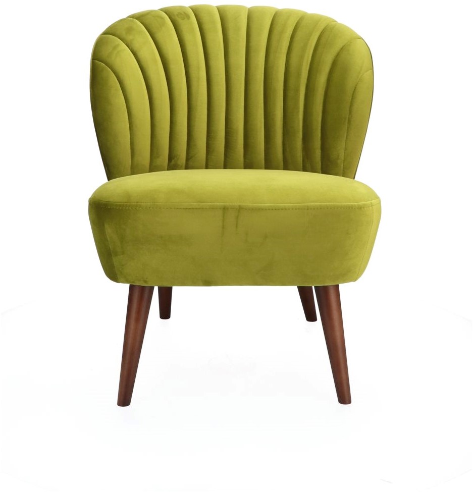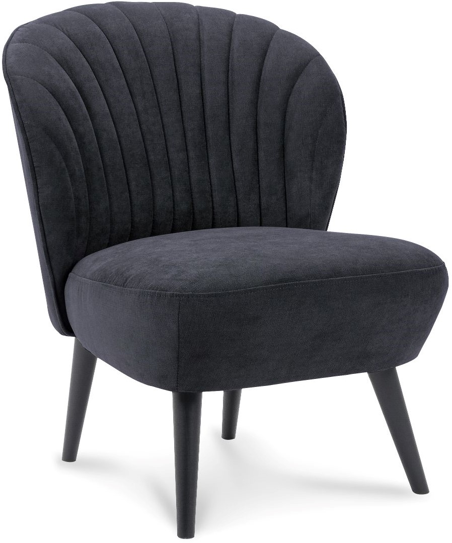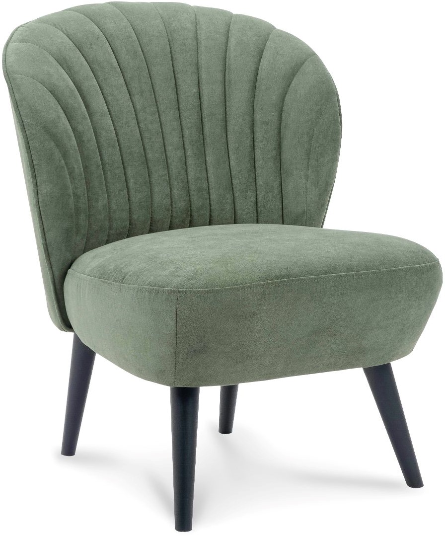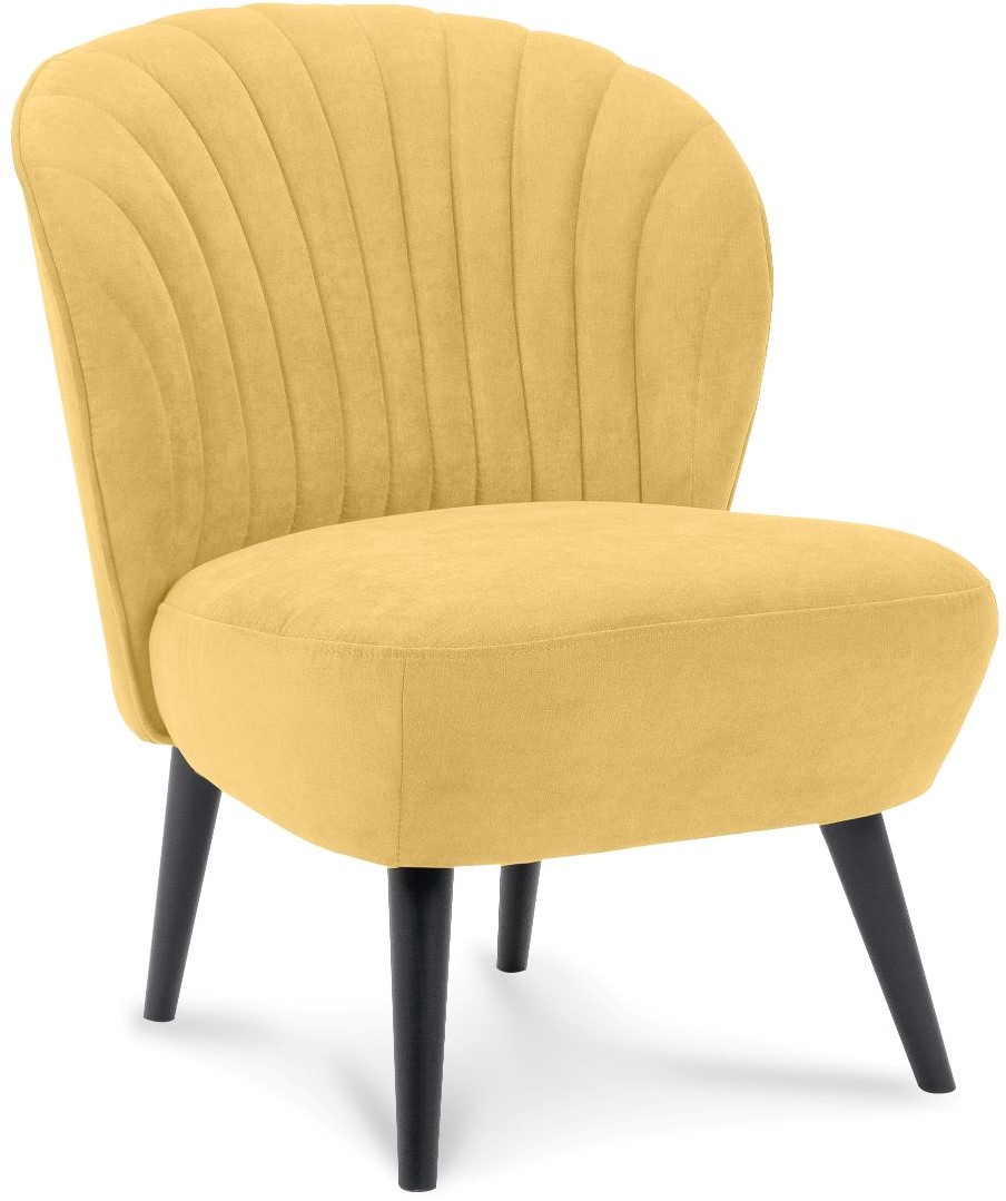 • De Shelldon is een leuke fauteuil met ronde vormen en een 4-poot frame. De stoel heeft een stikking met verticale schelpvormige lijnen in de rugleuning.