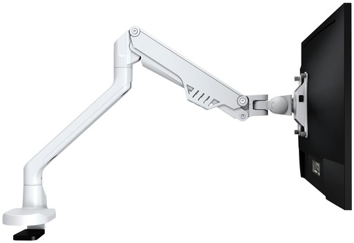 Het draagvermogen van de arm is 2-8 kg per scherm en de arm beschikt over een 180graden rotatiestop en platte topfixklem.