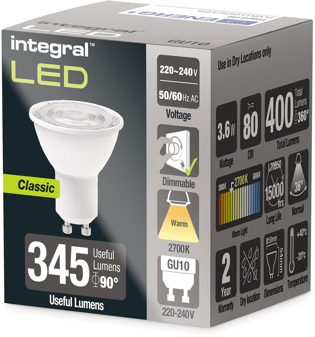 Stel een vraag over Integral LED spot GU10, dimbaar, 2.700 K, 3,6 W, 400 lumen