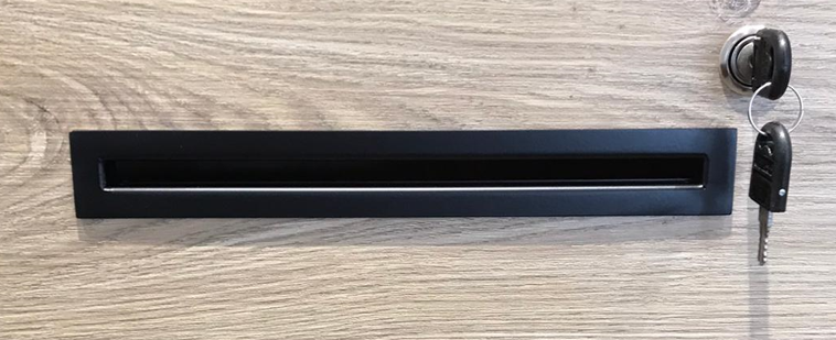 Deze metalen brievenbus voor opbergelement Flexwall maakt het (gesloten) opbergelement toegankelijk voor post en of andere documenten.