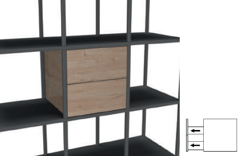 - Combineren met dichte kasten in dezelfde kleur melamine als de schapplanken van het frame.