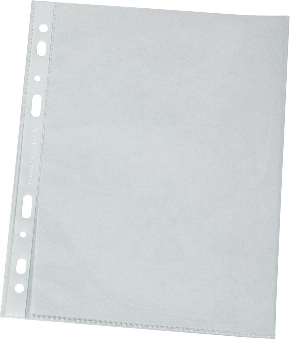 Voor ft A4. Uit PP van 120 micron. Gekorreld. 11-gaatsperforatie. Doos van 100 stuks.