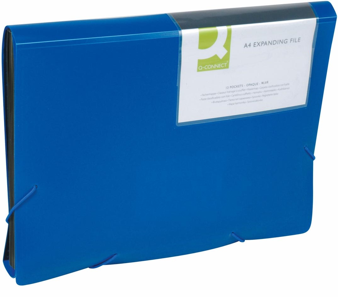 Stel een vraag over Q-CONNECT voorordner, A4, PP, met 13 vakken, elastieksluiting, blauw