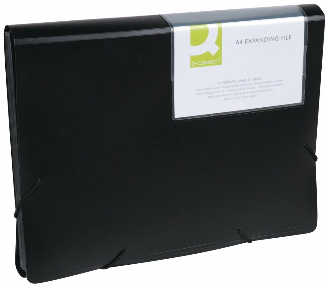 Stel een vraag over Q-CONNECT voorordner, A4, PP, met 13 vakken, elastieksluiting, zwart