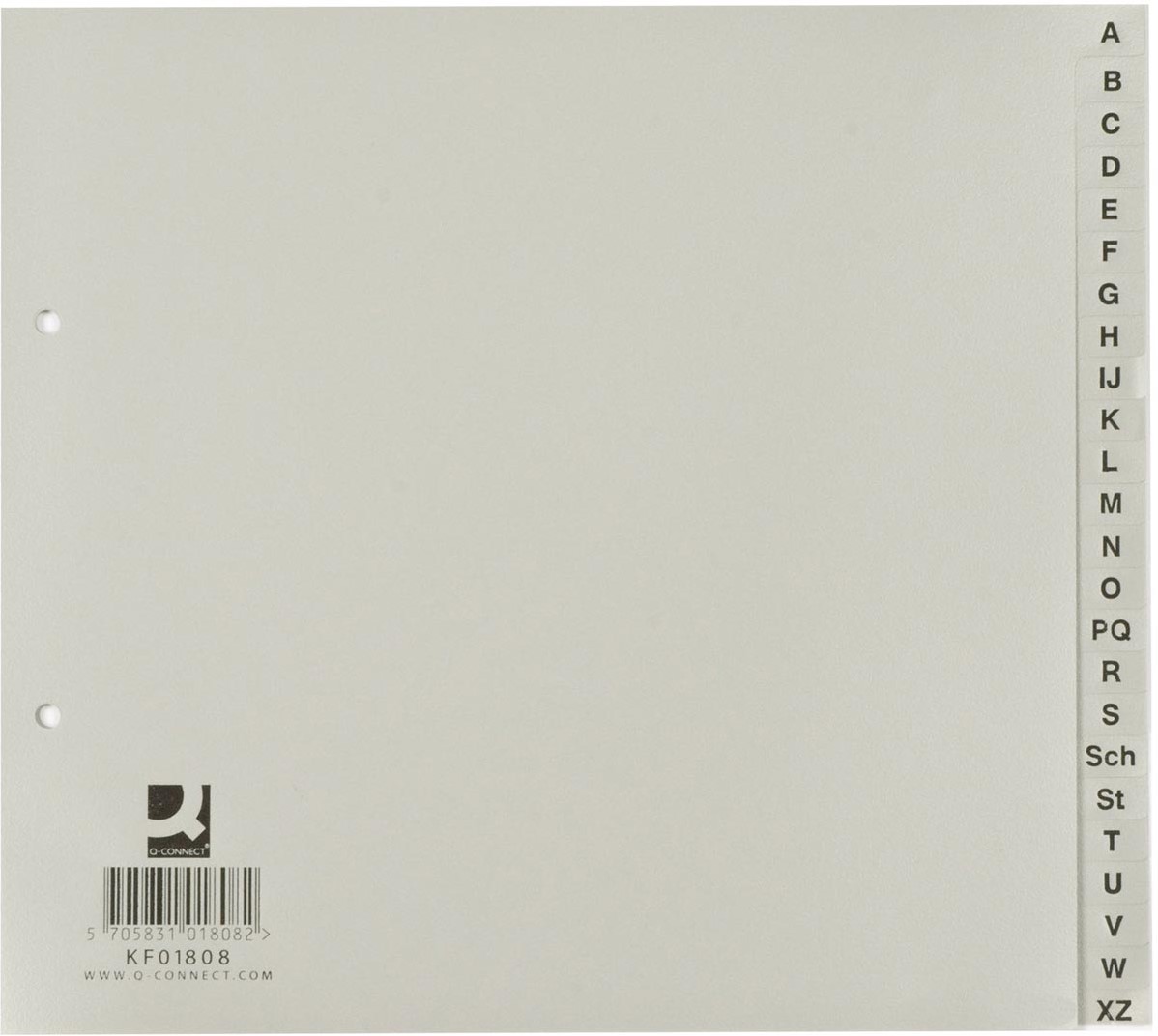 Specificaties Q-CONNECT tabbladen, ft 21 x 23 cm, PP, 2-gaatsperforatie, set van A-Z, grijs