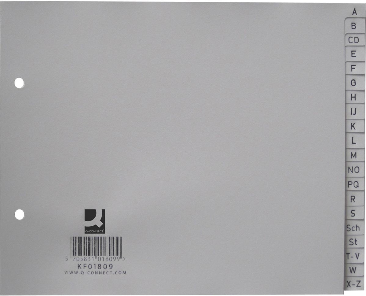 Specificaties Q-CONNECT tabbladen, ft 18 x 22,5 cm, PP, 2-gaatsperforatie, set van A-Z, grijs