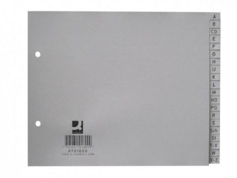 Artikelomschrijving Q-CONNECT tabbladen, ft 18 x 22,5 cm, PP, 2-gaatsperforatie, set van A-Z, grijs