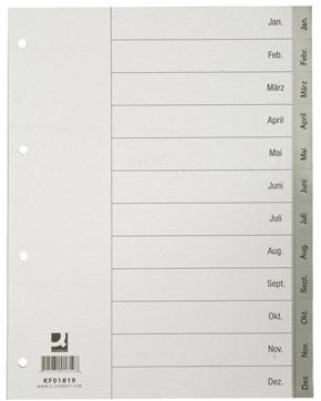 Stel een vraag over Q-CONNECT tabbladen, A4, PP, 11-gaatsperforatie, met indexblad, set van Jan-Dec, grijs