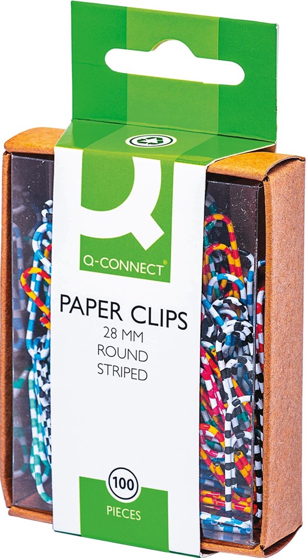 Stel een vraag over Q-CONNECT papierklemmen, 28 mm, doos van 100 stuks, gestreept in wit en geassorteerde kleuren