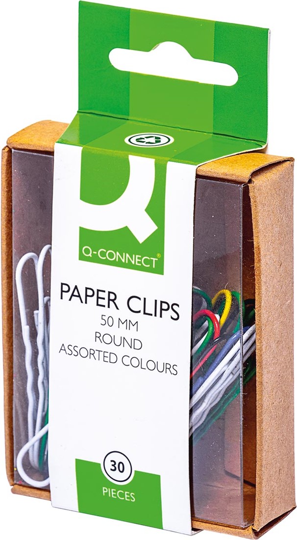 Stel een vraag over Q-CONNECT papierklemmen, 50 mm, gekleurd, doos van 30 stuks, ophangbaar