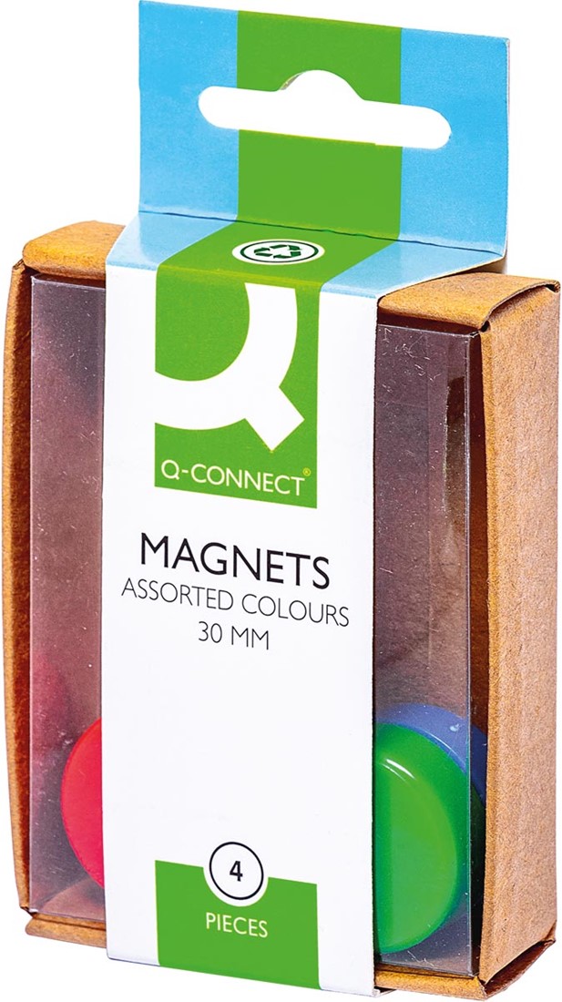 Specificaties Q-CONNECT magneten, 25 mm, geassorteerde kleuren, doos van 4 stuks