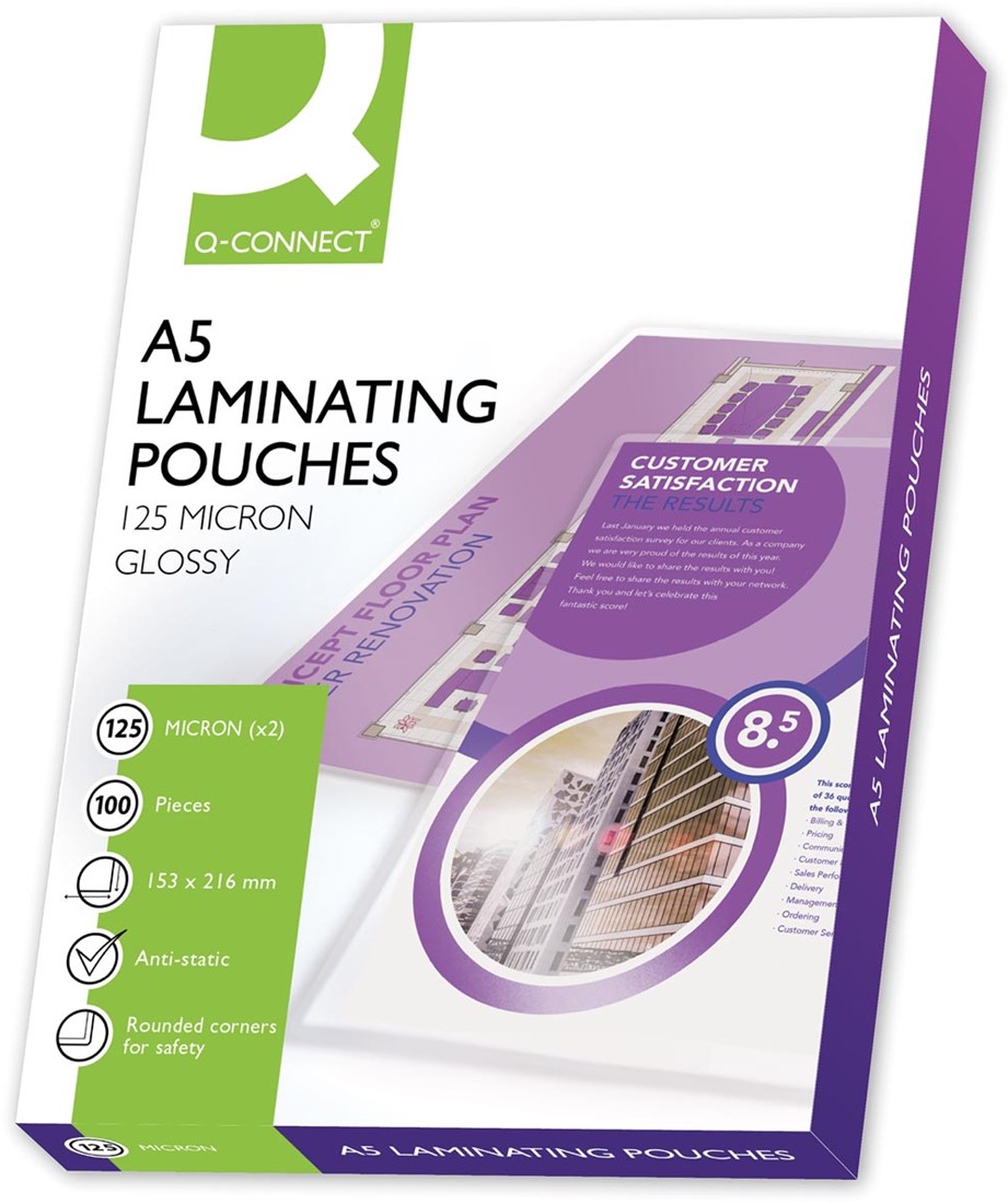 Artikelomschrijving Q-CONNECT lamineeretui A5 2x 125 micron 100 stuks