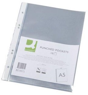 Artikelomschrijving Q-CONNECT geperforeerde showtas A5 4-gaatsperforatie glashelder 100 micron pak van 10 stuks