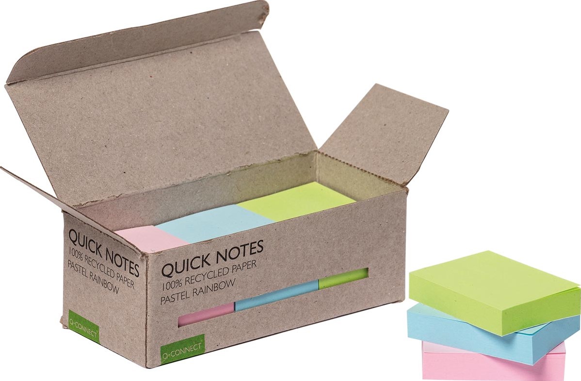 Artikelomschrijving Q-CONNECT Quick Notes Recycled pastel, ft 38 x 51 mm, 100 vel, doos van 12 stuks in geassorteerde kleuren
