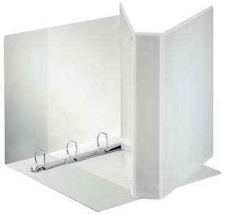 Voor ft A4 maxi (28,8 x 31,9 cm). Met 4 D-ringen. PP-folie tweezijdig op het karton geplakt en gelast. Insteektas op voorzijde, rug en achterzijde. Horizontaal insteekvak aan binnenzijde voor opbergen van losse papieren. Kleur: wit. FSC Recycled gecertificeerd.