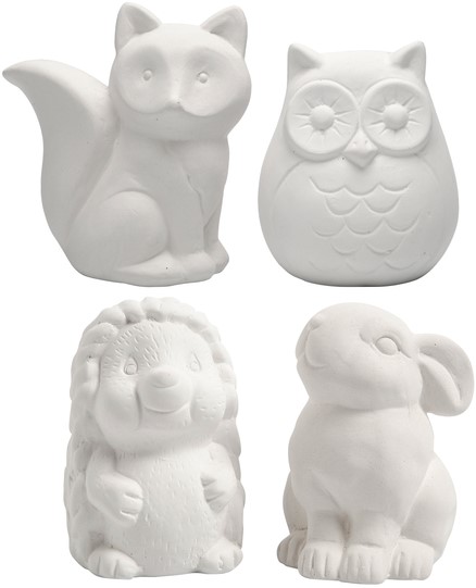 Stel een vraag over Dierenspaarpot Creativ Company terracotta 4 stuks uil, vos, haas en egel 9-10cm wit