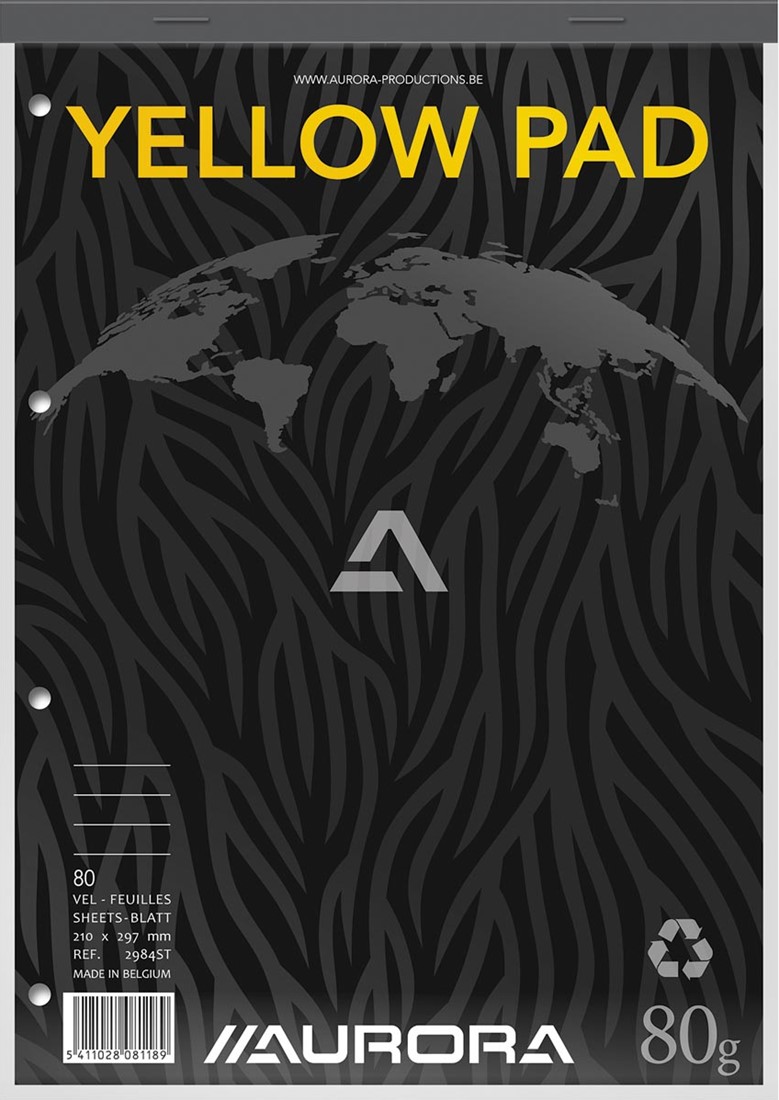 Stel een vraag over Aurora Writing recycle notablok geel A4 gelijnd