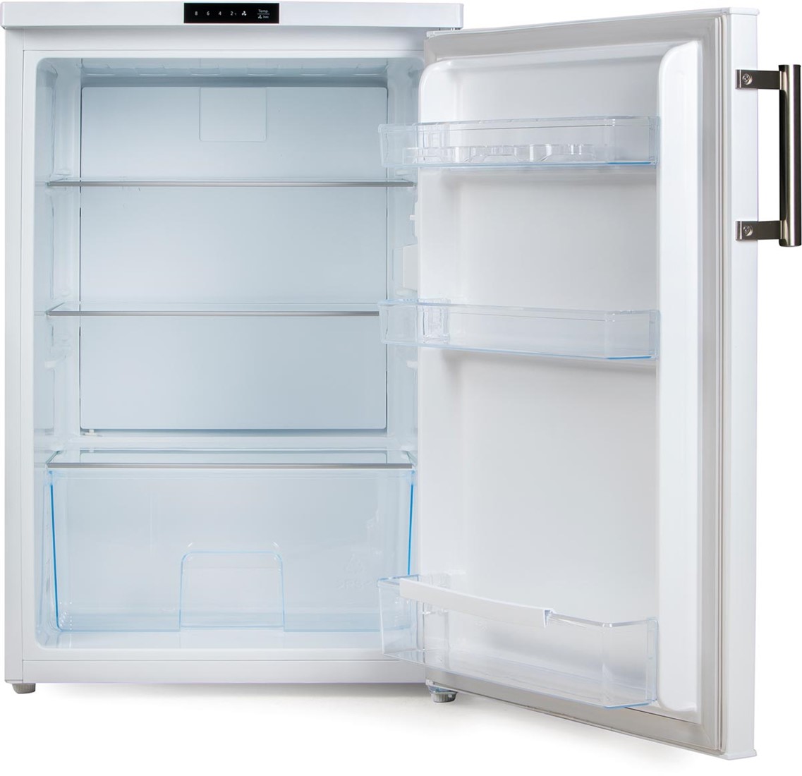 Inhoud: 134 l Omkeerbare deur met magnetische afsluiting Extern led-display met elektronische temperatuurregeling Superkoelfunctie Inclusief 3 glazen leggers, groentelade, 3 deurvakken en ledverlichting Stijlvolle roestvrijstalen greep Geluidsniveau:38 dB Ft 55,5 x 63 x 84,5 cm Kleur: wit Energieklasse: D