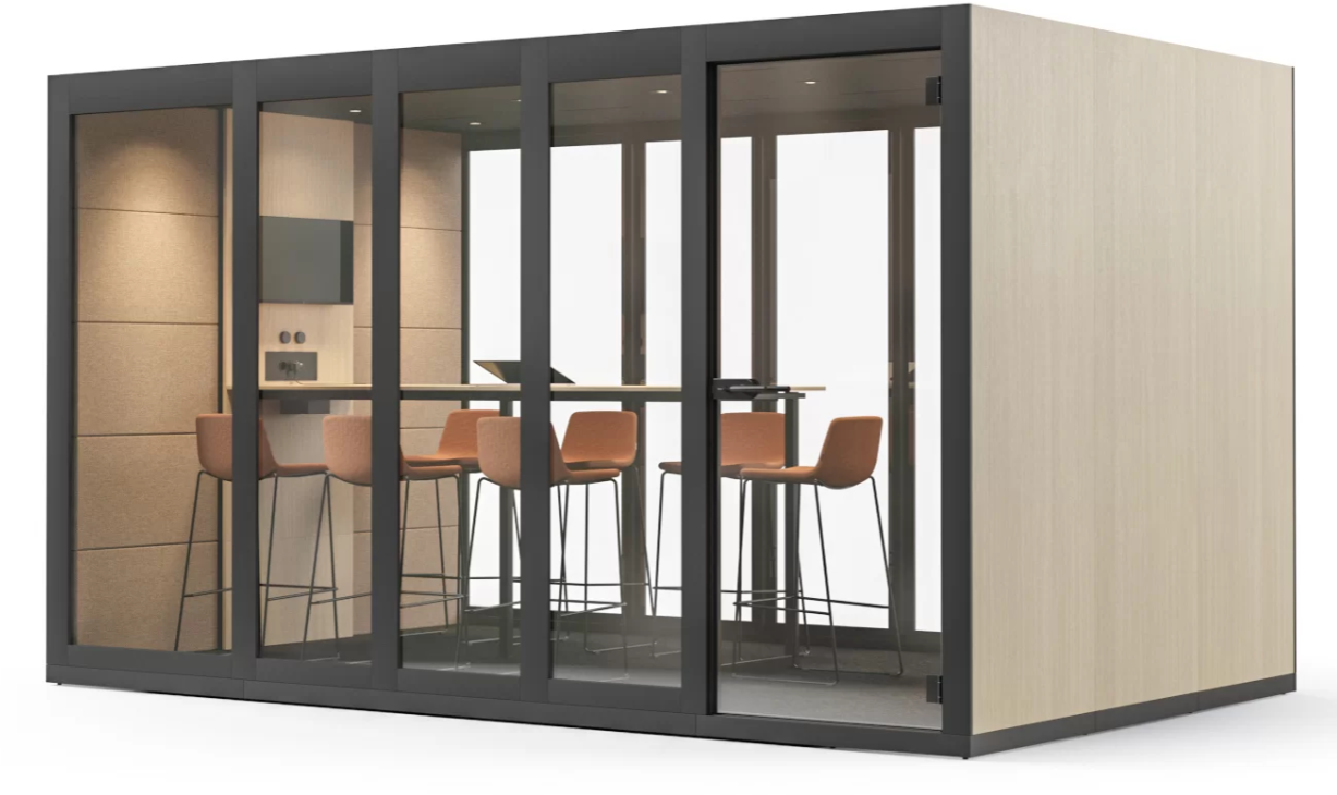 • Silent Room XL is ontworpen voor maximaal 8 personen, die hun taken comfortabel kunnen uitvoeren in deze ruime kamer. Het heeft alles wat je nodig hebt voor een vergadering: VESA-schermbevestiging voor presentaties en gemakkelijke toegang tot een stopcontact tot een stopcontact om je apparaten op te laden. De Silent Room XL is ideaal voor vergaderingen die wat langer duren.  Deze stilte ruimte is een echte eyecatcher en doordat hij volledig zelf samen te stellen is en uit te breiden is met verschillende opties, past hij in elk interieur. De Silent Room XL is nu ook uit te voeren met een glazen achterwand in plaats van de dichte gestoffeerde achterwand!