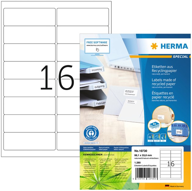 Stel een vraag over Etiket HERMA recycling 10730 99.1x33.8mm 1280stuks wit