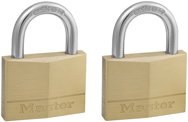 Hangslot MasterLock 2 gelijksluitend messing 30mm 2 stuks