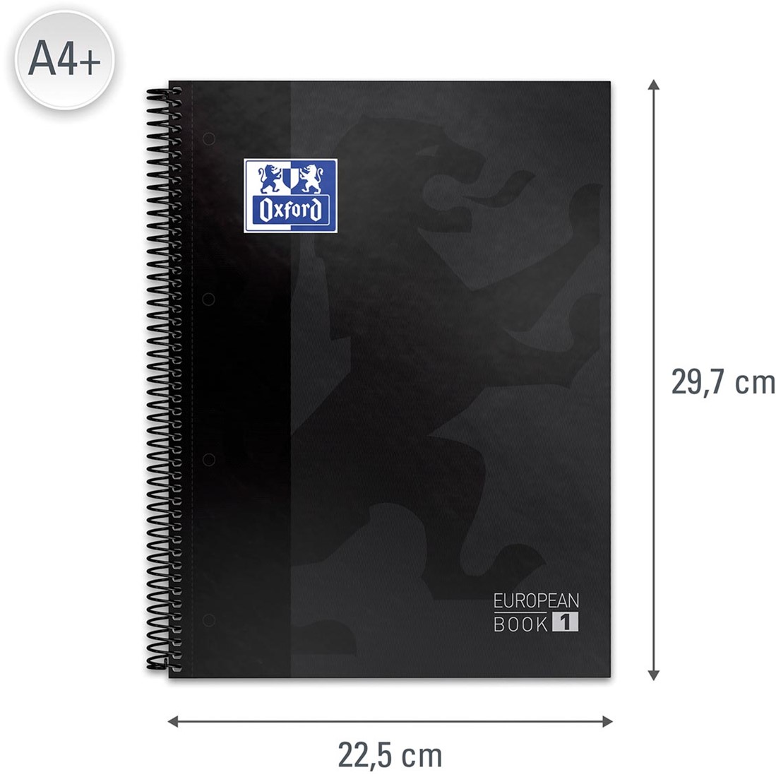 Artikelomschrijving Oxford School Classic Europeanbook spiraalblok, ft A4+, 160 bladzijden, geruit 5 mm, zwart