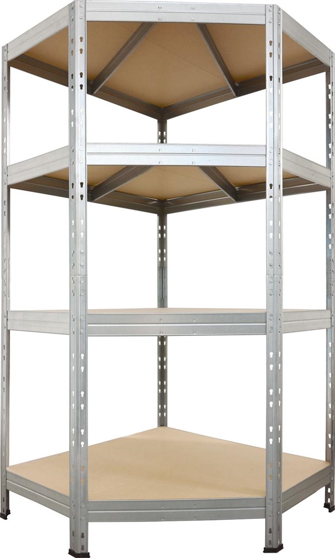 Artikelomschrijving AR Shelving rek Corner Rivet, ft 180 x 90 x 90 x 45 cm, 4 legborden uit HDF, gegalvaniseerd