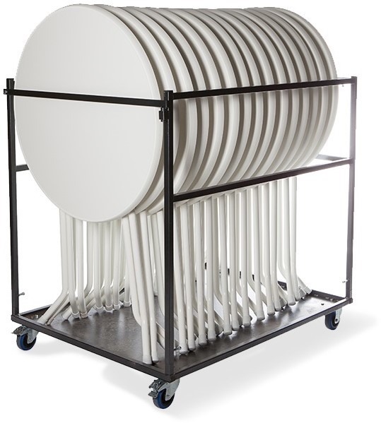 Deze speciaal ontworpen transportkar/opbergkar voor het vervoer van partytafels. Het maakt het vervoeren en opbergen van meerdere statafels tegelijk mogelijk. De afmetingen zijn afgestemd op een deuropening, zodat de gevulde trolley gemakkelijk binnen en buiten vervoerd kan worden. De trolley heeft een zeer degelijk frame en beschikt over wielen met een grootte van 100 millimeter. Afhankelijk van het model van de statafel, kunnen er meerdere tafels op één trolley.