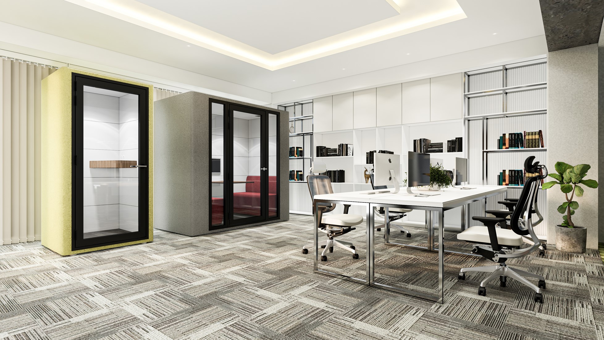 • De belcel Roof Single Pod is een akoestische stilteruimte, ook wel bekend als akoestische pod. De ruimte is een geweldige oplossing voor kantoorruimtes waar achtergrondgeluid een probleem is. Deze kleine, afgesloten ruimte bied een oase van stilte waar medewerkers zich kunnen concentreren op hun werk zonder afgeleid te worden door het omgevingsgeluid. De Roof Single Pod is verkrijgbaar met akoestische of glazen achterwand.