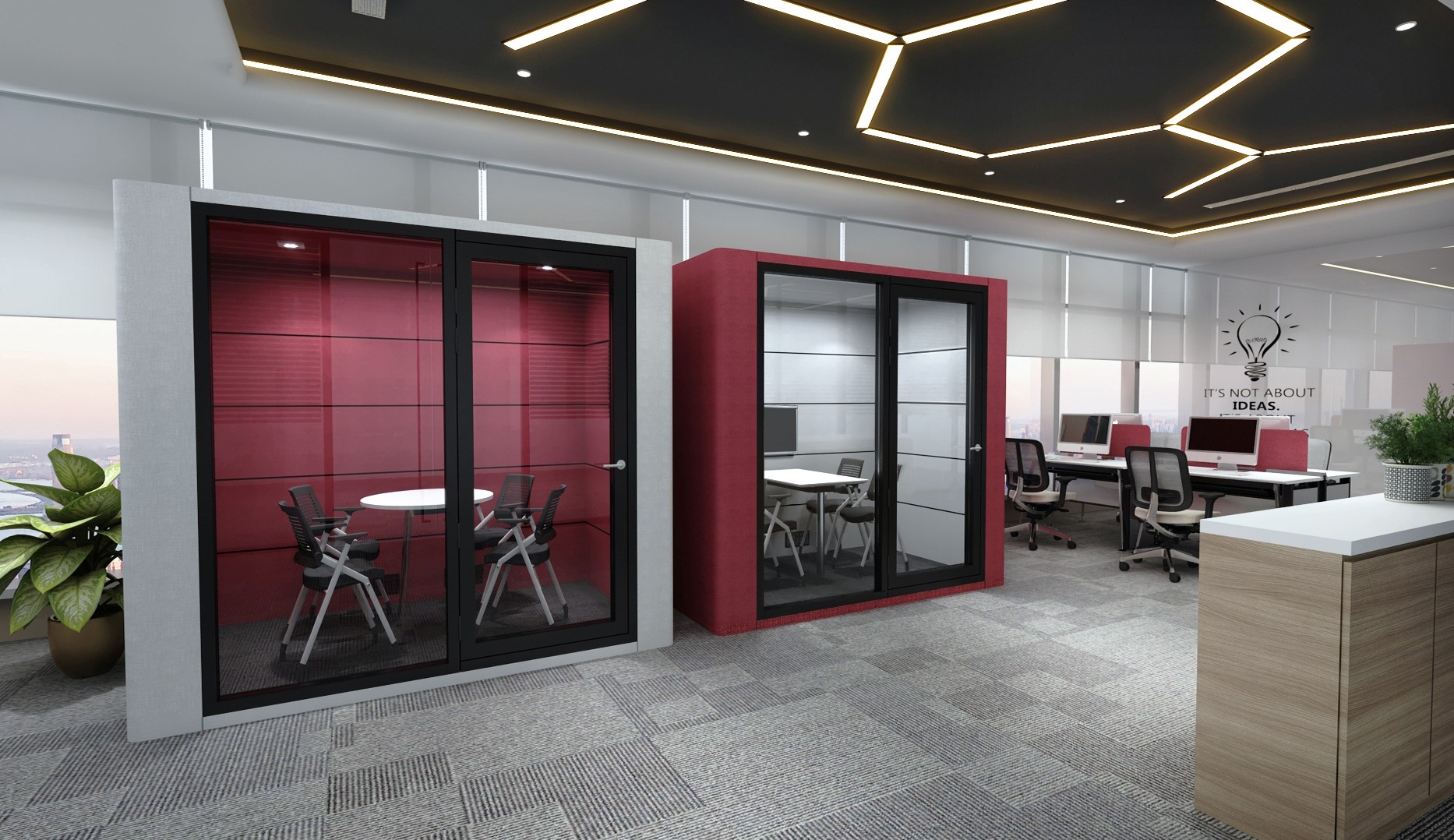 • De Roof Meeting Pod is een grote akoestische kantoorruimte, ook wel bekend als akoestische pod. De ruimte is een geweldige oplossing voor kantoorruimtes waar achtergrondgeluid een probleem is. Deze afgesloten ruimte bied een oase van stilte waar medewerkers kunnen vergaderen en of werken zonder afgeleid te worden door het omgevingsgeluid. De Roof Meeting Pod heeft een akoestische achterwand.