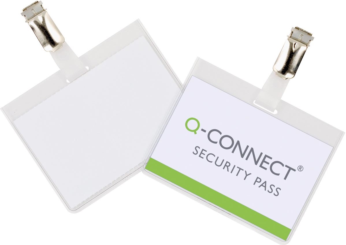 Specificaties Q-CONNECT badge met clip 90 x 60 mm, doos van 25 stuks
