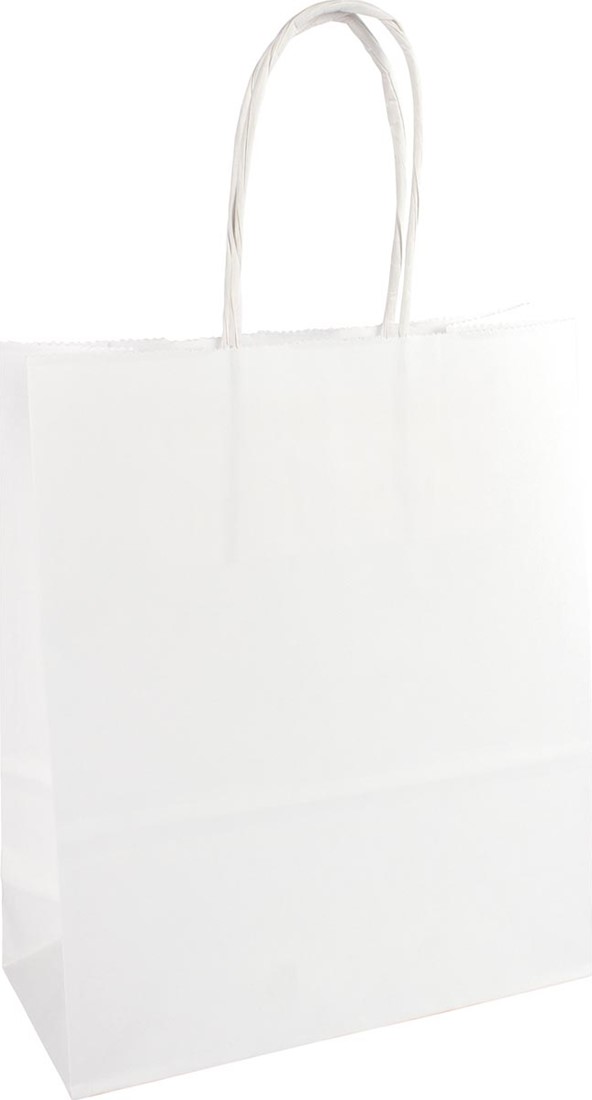 Artikelomschrijving Papieren zak, ft 18 x 8 x 22 cm, wit