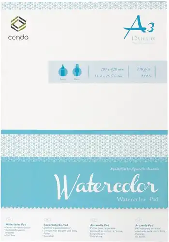 Dit aquarelblok A3 met 12 vellen van 230 grams papier is perfecte gebruiken met de diverse merken aquarelverf.