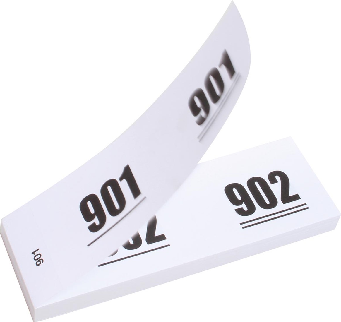Blok met dubbele nummering 1 tot 1000, voorzien van middenperforatie. Verpakt in doosjes met 10 blokjes van 100 nummers.