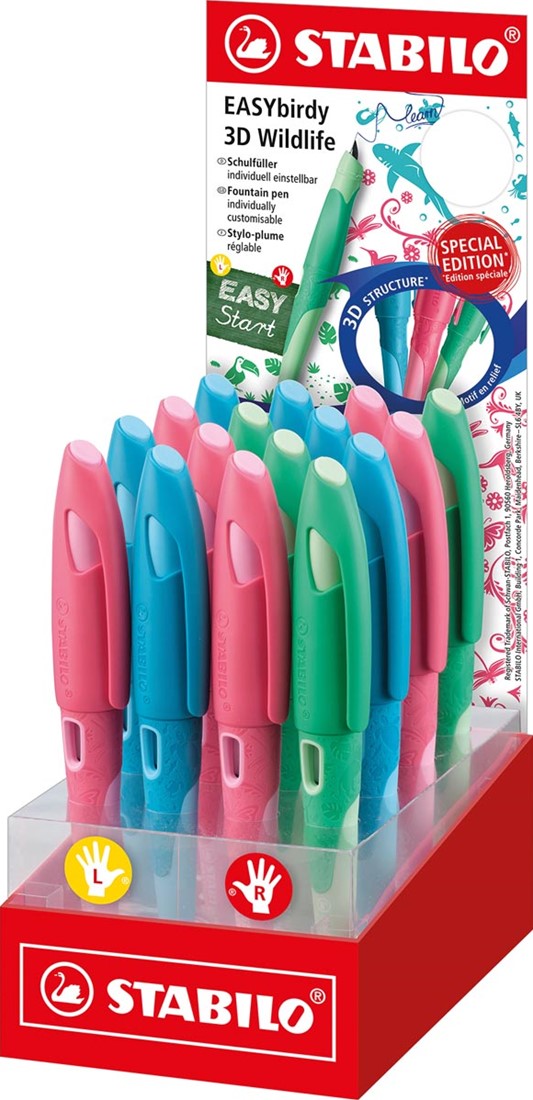 Artikelomschrijving STABILO EASYbirdy vulpen 3D Wildlife, display van 16 stuks