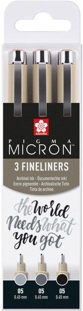 Stel een vraag over Fineliner Sakura Pigma Micron 05 set zwart & grijs 3 maten