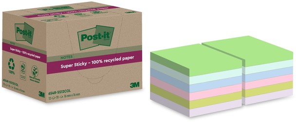 Stel een vraag over Memoblok Post-it 654 RSS12COL 76x76mm recycled colour notes pastel 12 stuks