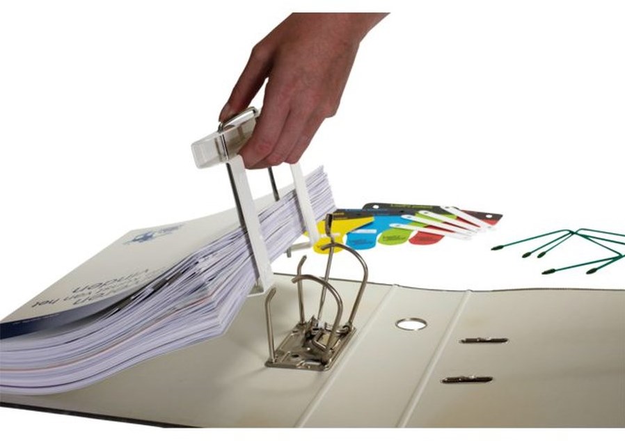 Handige beugel om in één handeling de inhoud van je ordner over de bundelbeugel te schuiven