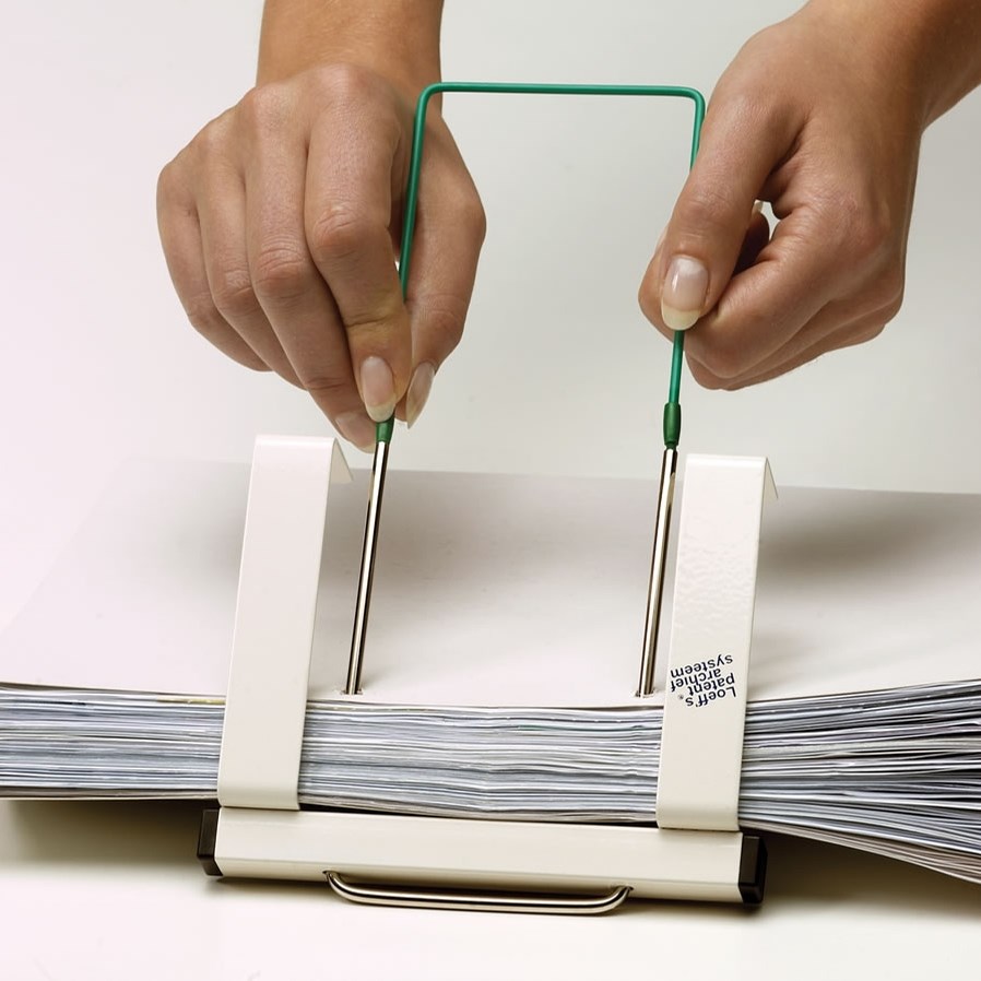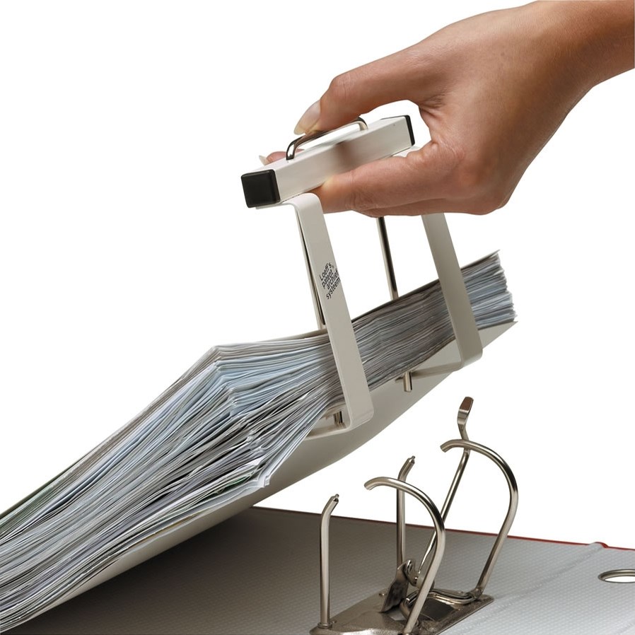 Een handig apparaat om in een handeling de inhoud van de ordner over de Loeff's bundelbeugel te hevelen