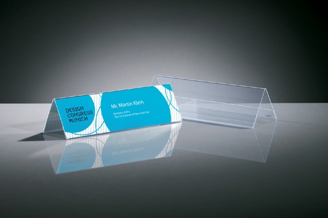 En om beurs- en tentoonstellingsstukken te kenmerken, als naambordje of voor prijsaanduiding.