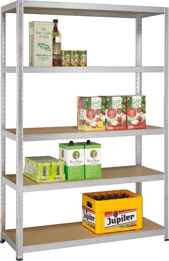 Strong 175, ft 176 x 120 x 40 cm (h x b x d), volledig boutloos, draagvermogen: 175 kg/legbord, 5 legborden in MDF, gegalvaniseerd, certificaat PEFC