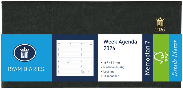 Agenda 2026 Ryam Memoplan 7 Mundior 7dagen/2pagina's landscape zwart