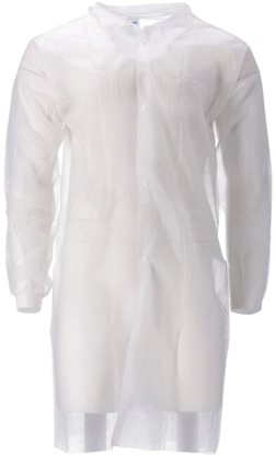 Bezoekersjas CMT L non-woven drukknopen 104cm lang PP wit 100 stuks
