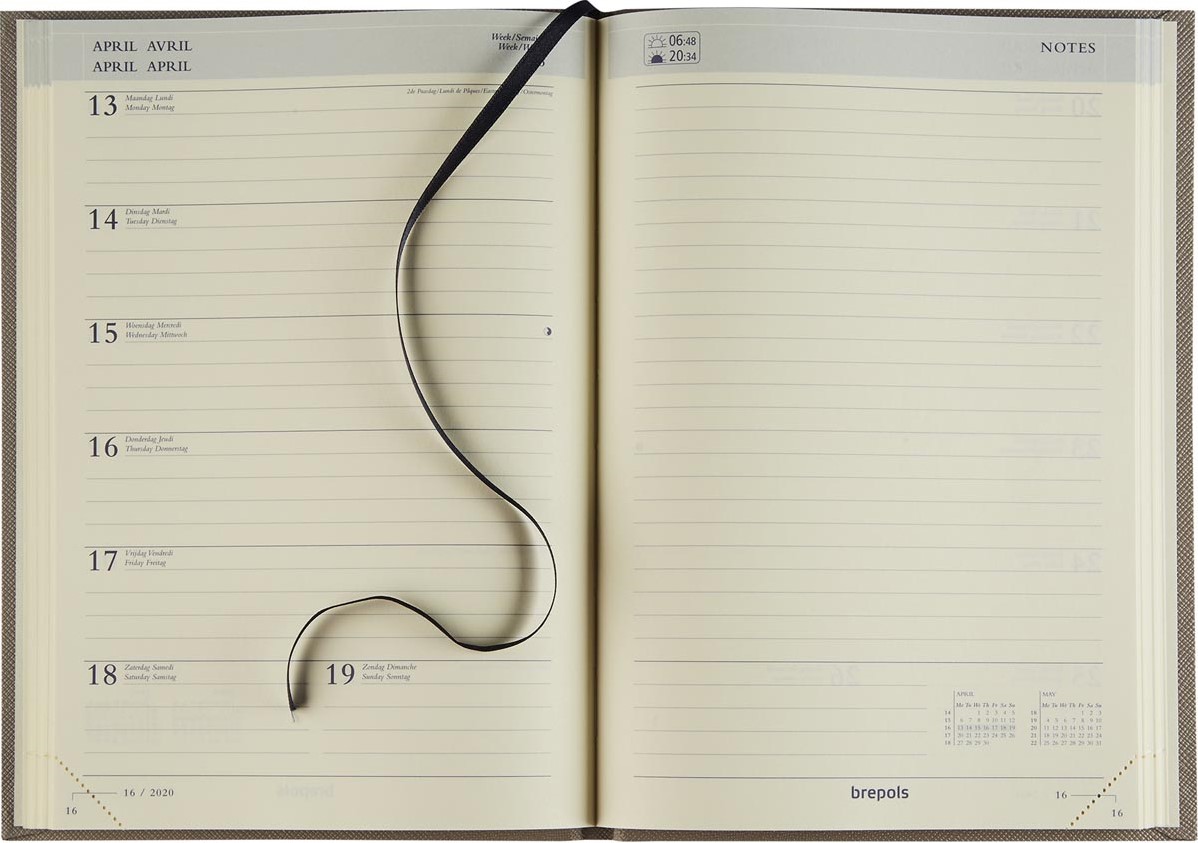 1 week per pagina en notes (van september 2024 tot december 2025) 16 maanden 4-talig Boekgebonden Crèmekleurig papier van 70 g/m² Met leeslint en scheurhoekjes Kaft uit half soepel papier Ft 148 x 210 mm