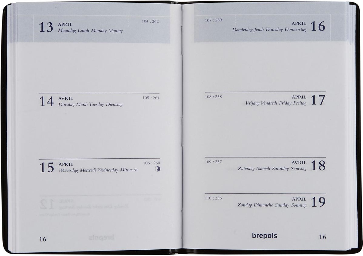 1 week per 2 pagina's 4-talig Boekgebonden Wit papier van 60 g/m² Kaft uit glad PVC met zijdeglans Ft 71 x 102 mm