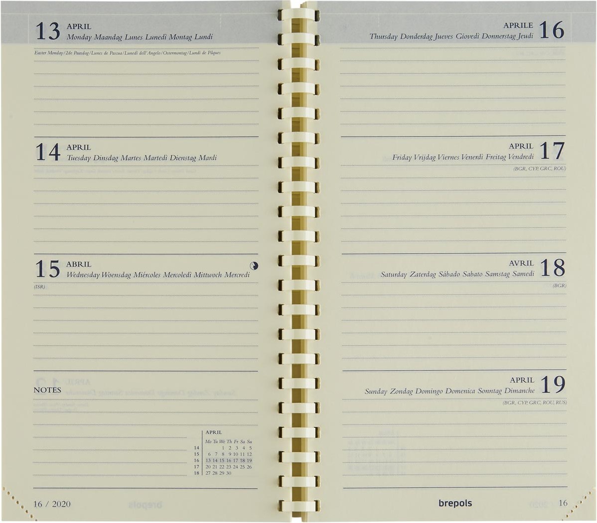 1 week per 2 pagina's (van september 2025 tot december 2026) 16 maanden 6-talig Spiraalbinding Crèmekleurig papier van 70 g/m² Met scheurhoekjes Kaft uit fijn generfd PVC Ft 90 x 160 mm
