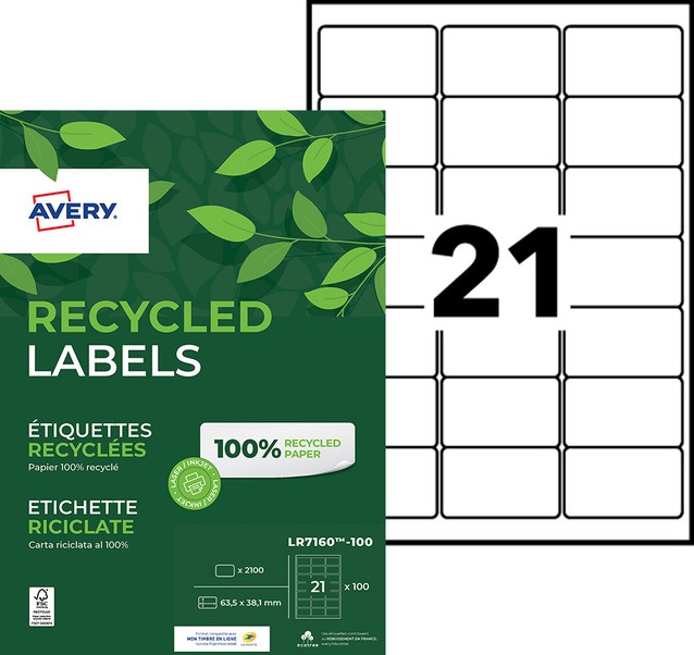 Avery etiket LR7160-100 63.5x38.1mm recycled wit 2100stuks