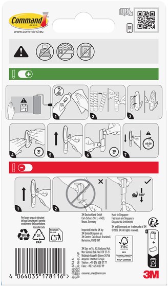 Command producten kunnen niet gebruikt worden op behangpapier of decoratiepleister (zoals bijvoorbeeld granol).