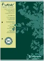 Dit Clairfontaine Forever Calligraphe cursusblok is gemaakt van gerecycled 70 gr. papier. Het A4 schrijfblok is gelinieerd, is geperforeerd met twee gaten en 100 bladen. Schrijfblokken uit dit unieke assortiment zijn gemaakt van 100% gerecycled papier met natuurlijke witheid, zonder ontinkting of optische witmakers. De FOREVER-kwaliteit is gemaakt van 100% post-consumer oud papier in de Everbal-fabriek in Frankrijk. De papiermachine in de fabriek wordt gevoed door hernieuwbare energie, verwarming met biomassa van fossiele oorsprong zonder CO2-uitstoot. De uitscheurbare en geperforeerde bladen hebben 2 gaten van 80 mm om gemakkelijk in een ordner of ringband te integreren.